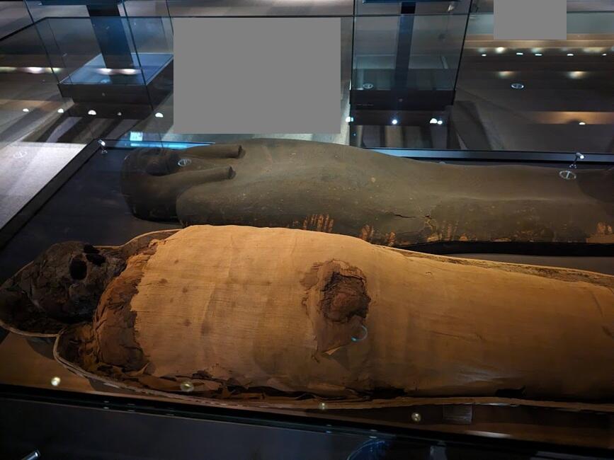 さらに、エジプトでは棺とミイラがセットで展示されてます。
